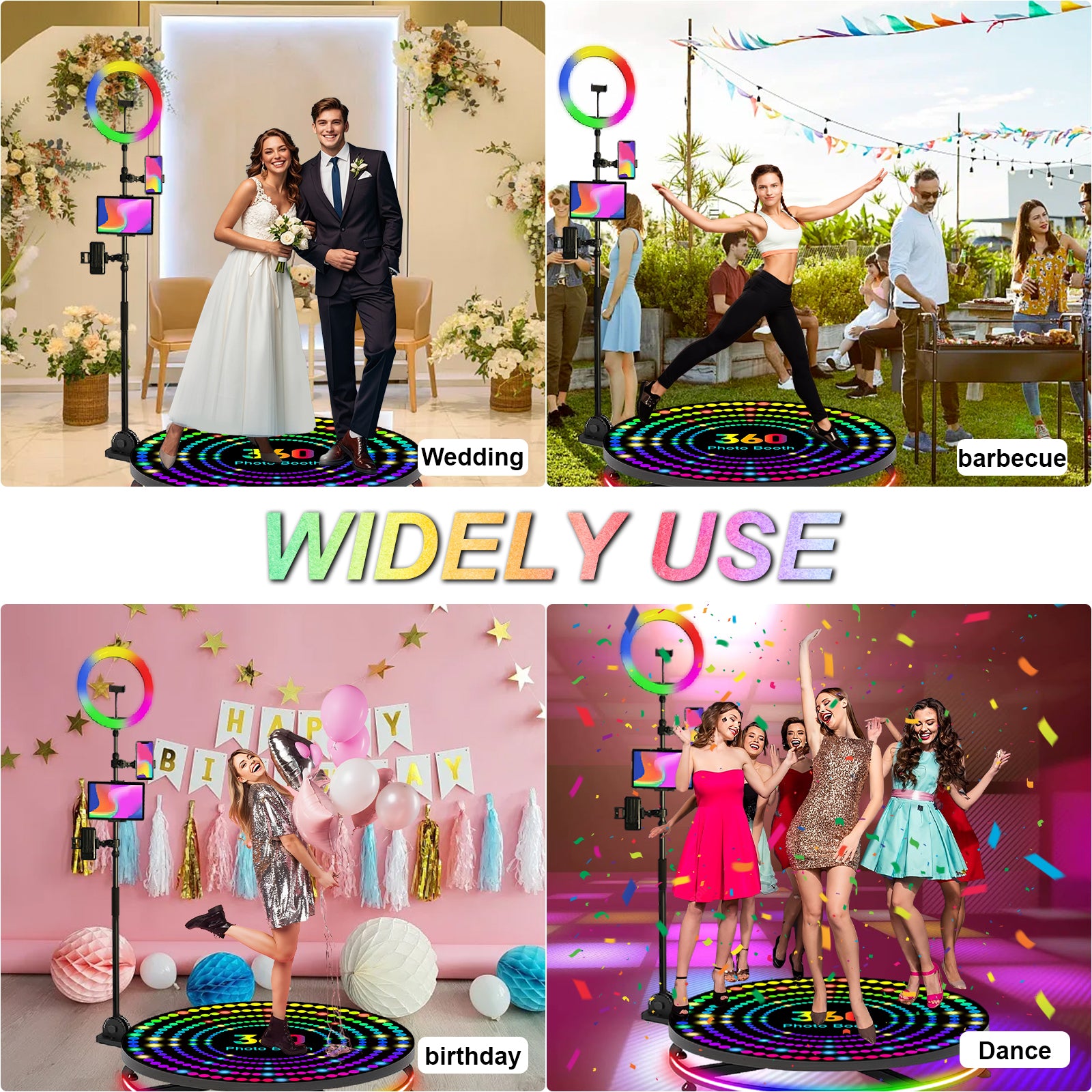 - 【360 Photo Booth with Software 】Shoots better with software(chacktok or others),there are a variety of shooting methods, such as Boomerang/Photo/Normal Video/Slow-motion Video/GIF,you can also add your own music.People stand on a 360 spin photo booth machine carnival,the 360 camera booth can record your wonderful moments in all directions.(Perfect for making your DIY videos).You can share to your friends or social platforms.