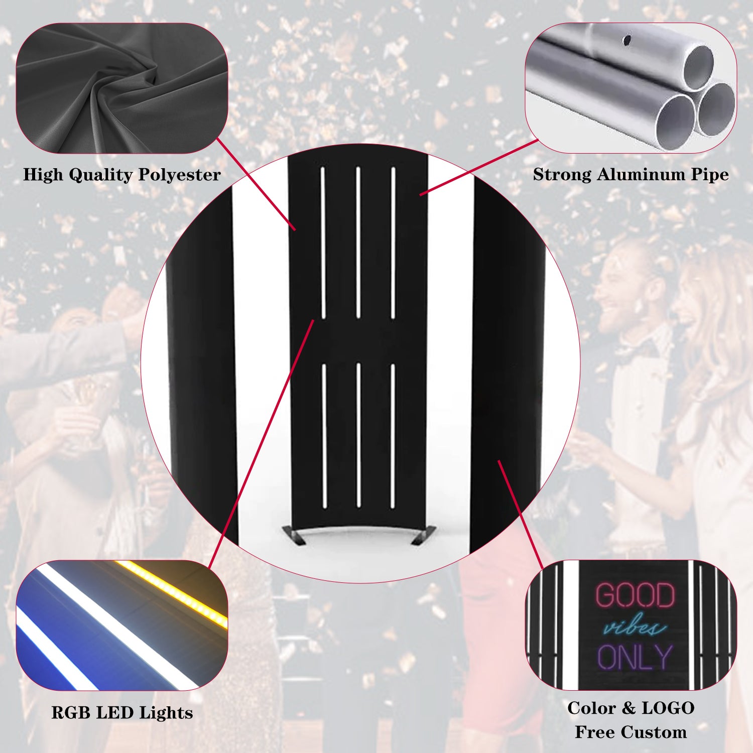 360 Photo Booth Backdrop for Party Event LED Lights Vogue Booth 360 Degree Video Camera Booth Enclosure Free Customize Logo for Events Weddings Parties